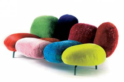 диваны из 9 пушистых комочков, соединенных металлическими прутьями.