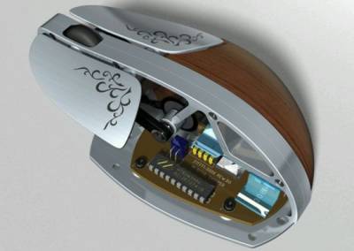 Не знаю будет ли после начала производства эта мышь самой удобной, но вот в том, что она войдет в число самых заметных грызунов, сомневаться не приходиться. Автор работы – дизайнер Андрей Чирков. «Мышелов» – а именно так переводится с английского название Mouser предполагается делать из металла и дерева. Оружейность названия подчеркивает выступ «под спусковой крючок» на морде.